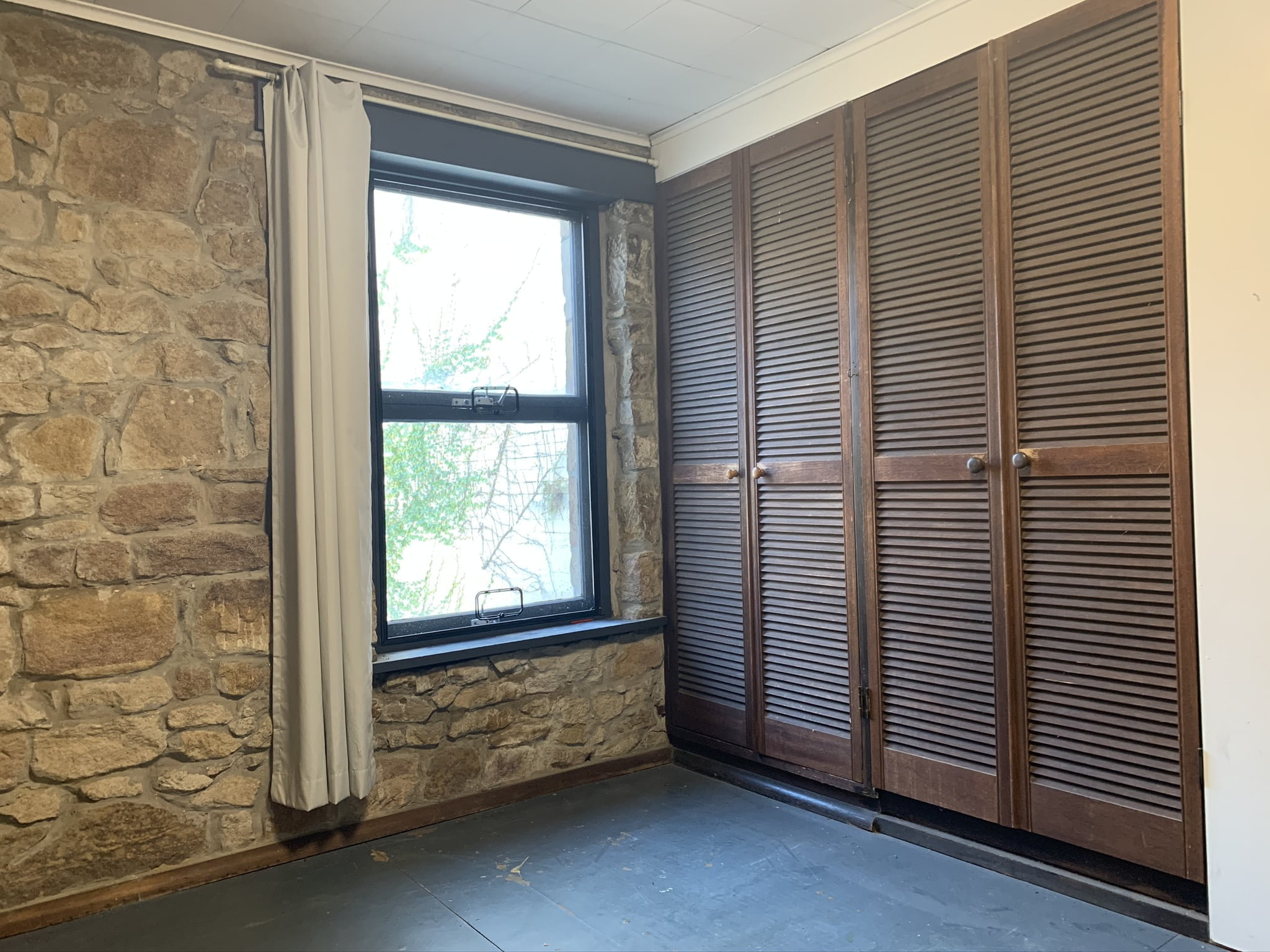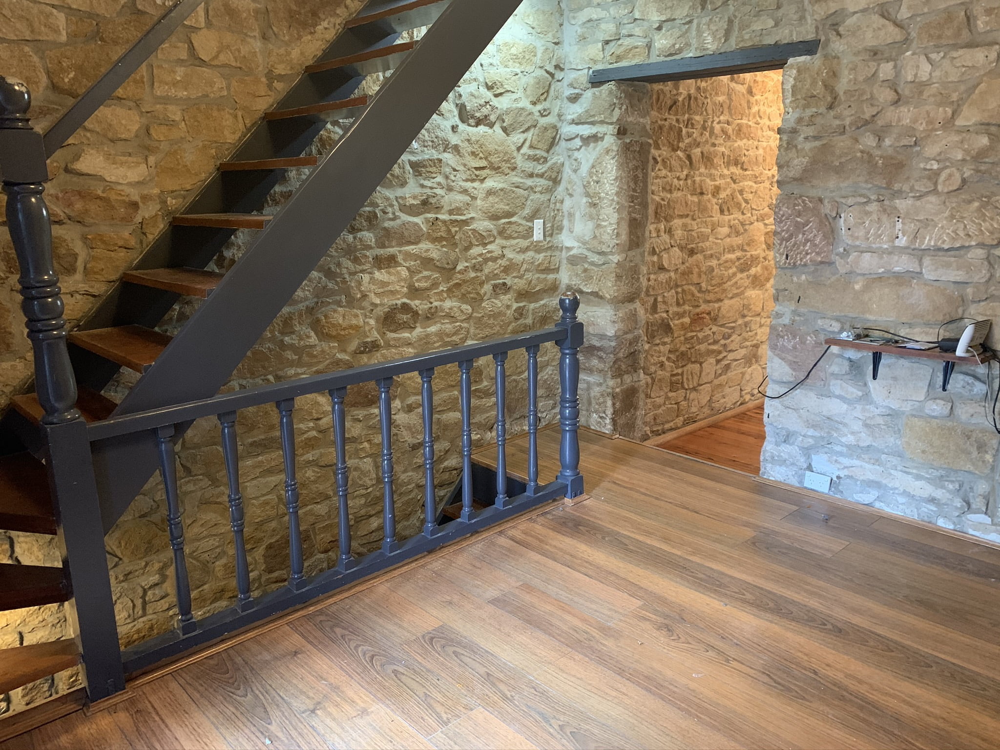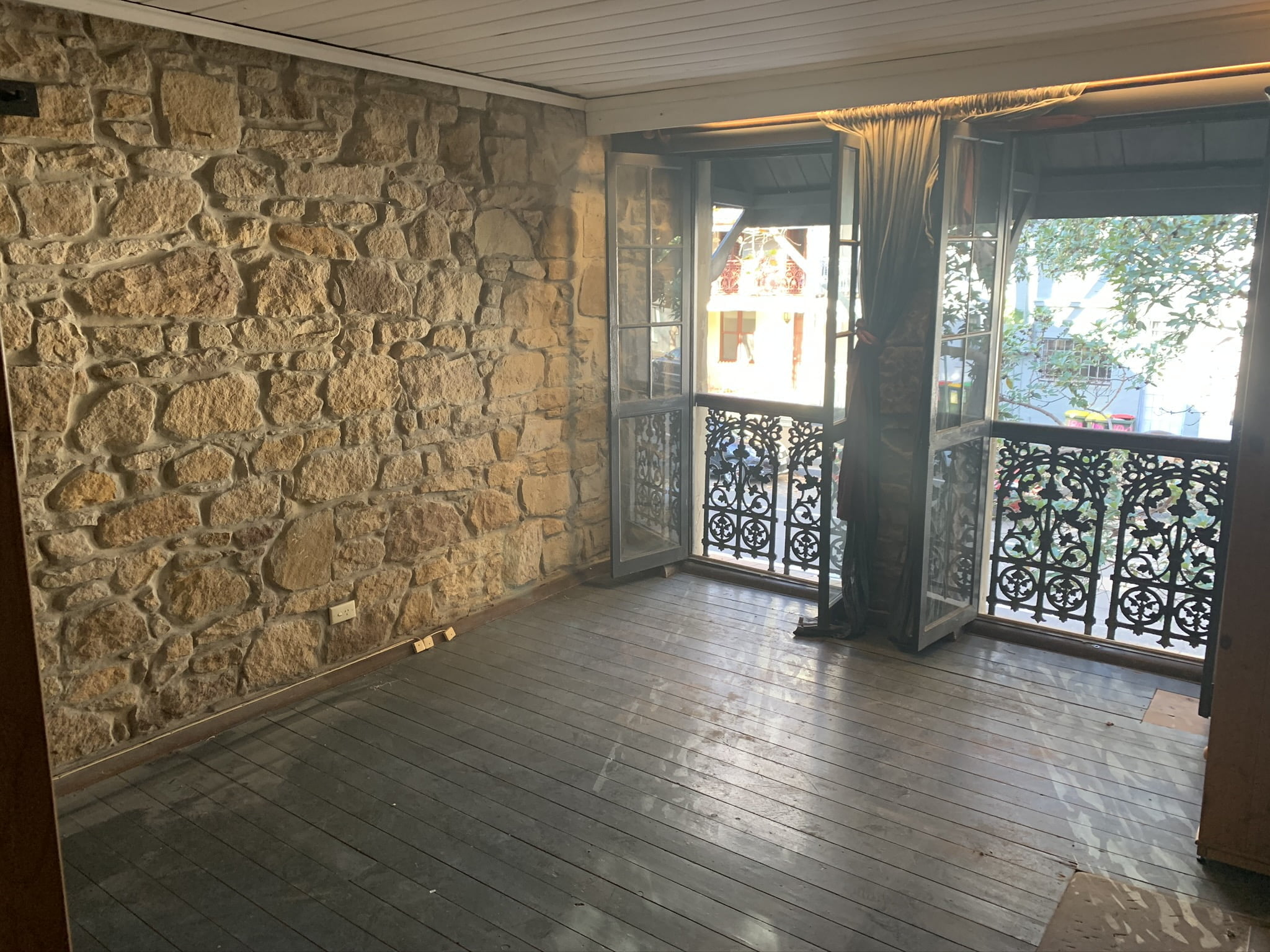 Impressive exposed sandstone walls, high ceilings and timber floors.
