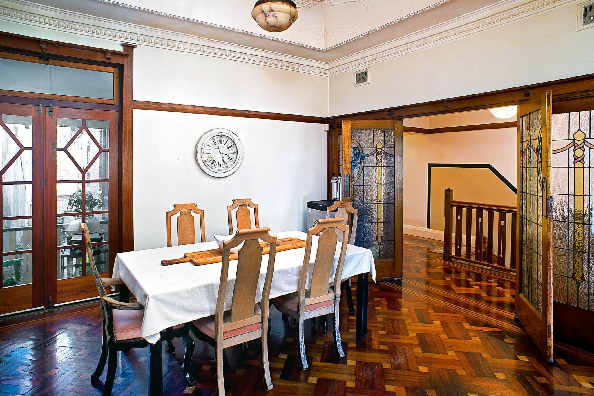 Showcasing impressive period features throughout with beautiful exposed polished cedar timber joinery and stunning polished parquetry timber floors and the classic ambience of yesteryear.