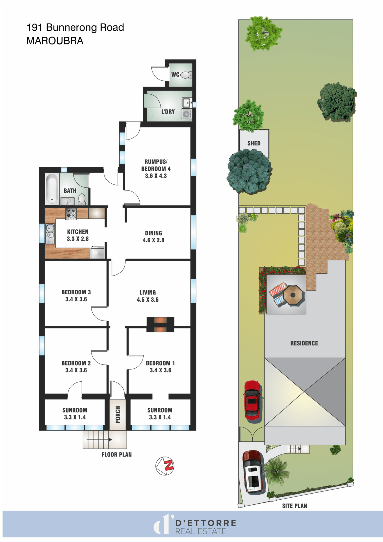- 4 bedrooms, 2 of which have enclosed sunrooms