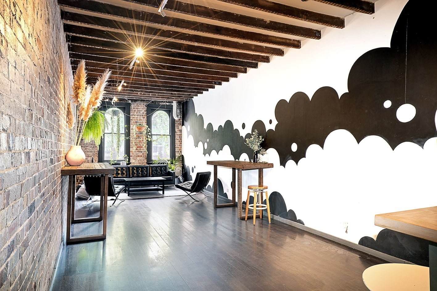 - Impressive face brick walls, high ceilings with exposed timber rafters