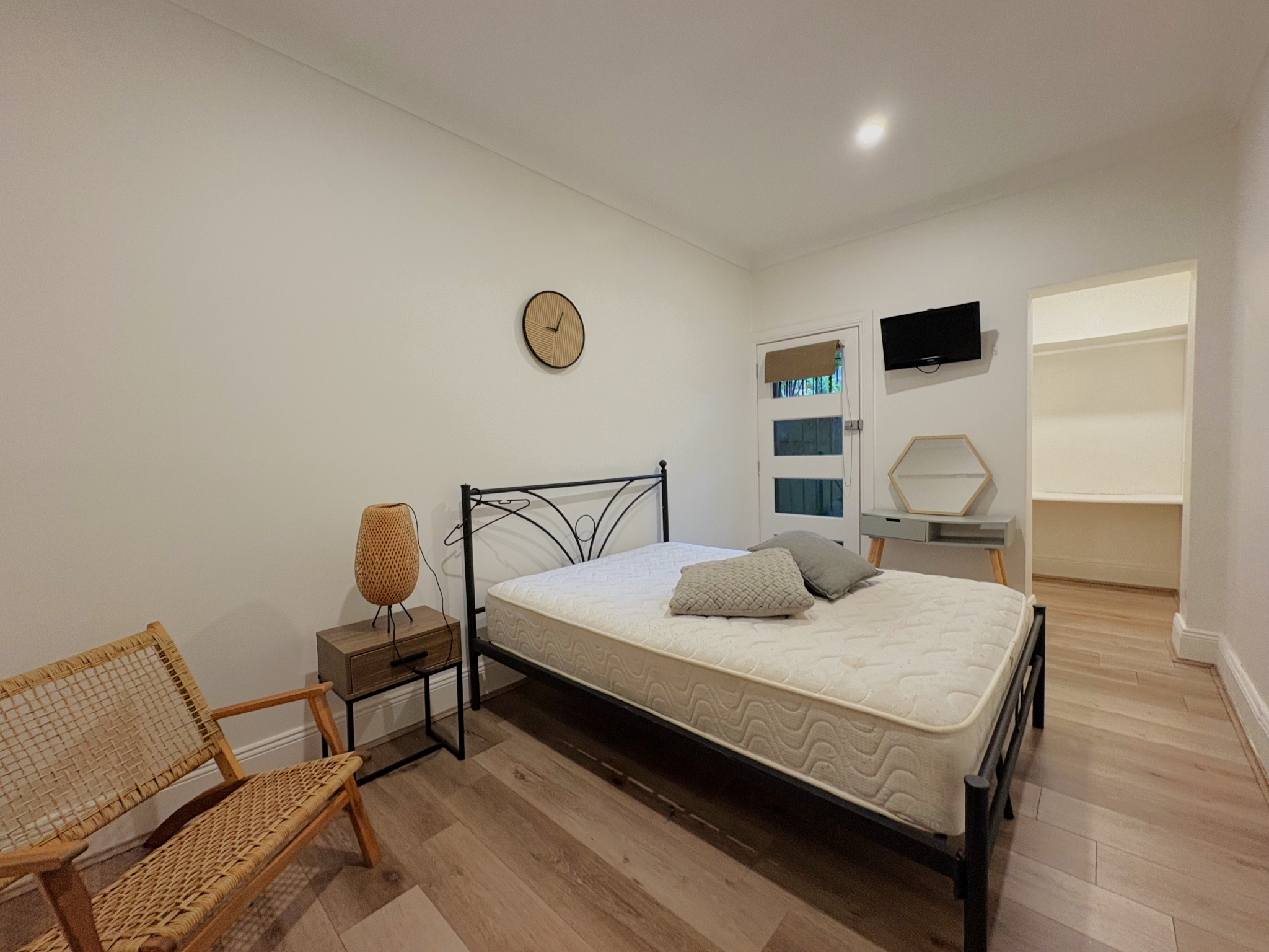 Fully furnished, bright and airy room, with double bed, built-in wardrobe and TV. Shared bathroom, large communal, fully equipped kitchen, laundry with dryer facilities, and private outdoor courtyard area. Ideal for the solo client, looking for self-catering accommodation.