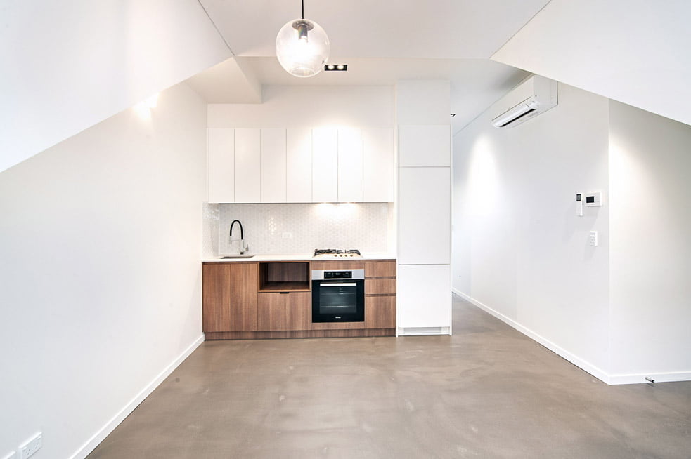 Impressive industrial concrete floors, plentiful storage, practical designer kitchen featuring stone benchtops. Kitchen features stylish splash backs and concealed laundry with combined washer/dryer. Bedroom featuring, built in robe, Juliette balcony enjoying district views towards Paddington.